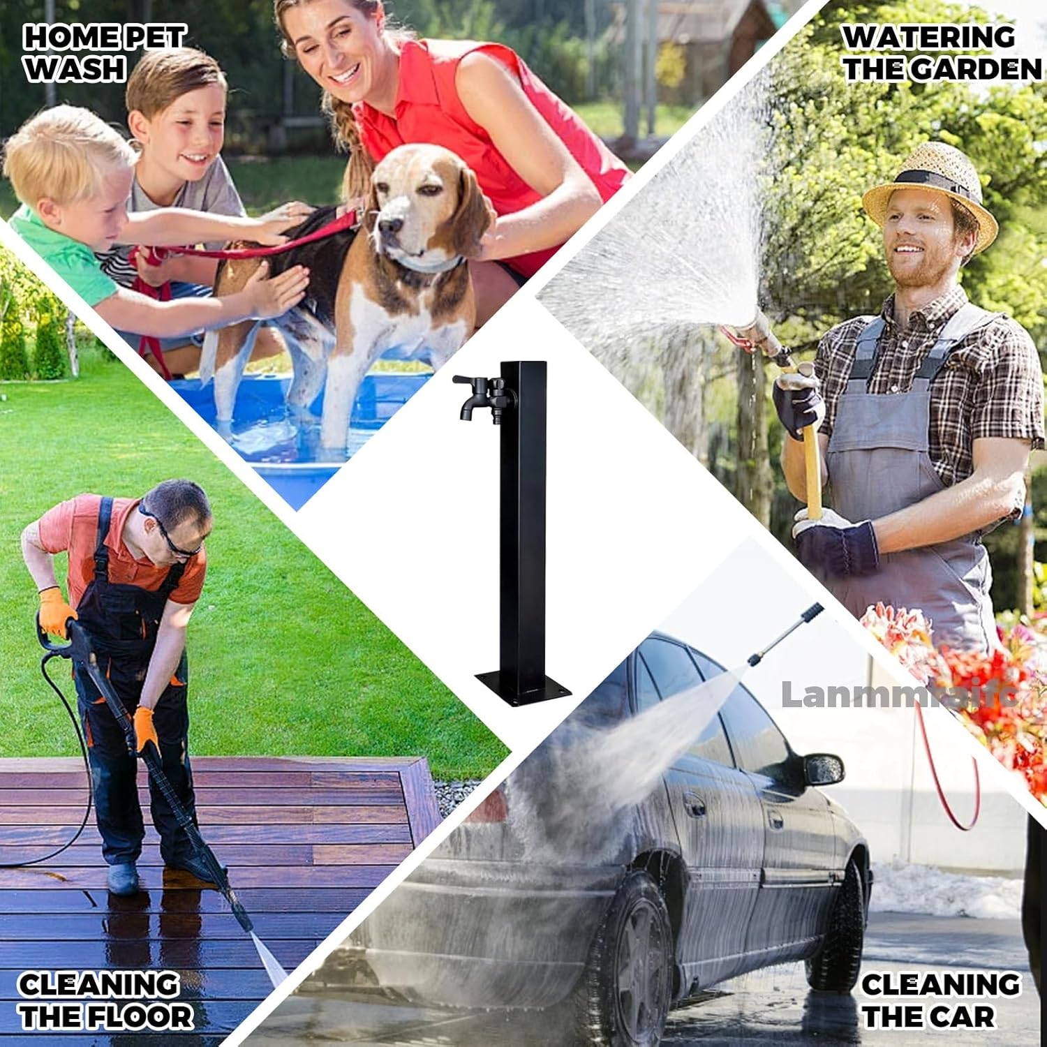 Blends perfectly with any garden decoration, making watering your garden or gardening a breeze. Product Specifications:- Product Name: Outdoor Vertical Water Column Faucet - Water Column Material: 304 stainless steel- Faucet Material: brass- Installation Method: side water inlet, bottom water inlet- Product Heights: 60cm/23.6in, 95cm/37.4in- Pipe Width: 6cm/2.4in- Color: Black Features:- The faucets are made of solid brass, durable and rustproof.- The internal of water column with anti-freeze thermal insulation layer, insulation and sun protection. Sun and rain proof in summer, anti-freeze and cold in winter.- Sturdy base holds the water column firmly to the ground without tilting. - There are two installation methods: side water inlet and bottom water inlet. - Easy to connect to the water source and can be used as a fire hydrant at any time. Package Includes:- 1x Water Column With Faucets- 1x Installation accessories After-sales service: We can customize any size/colour you want for you. You can tell us if you need it.