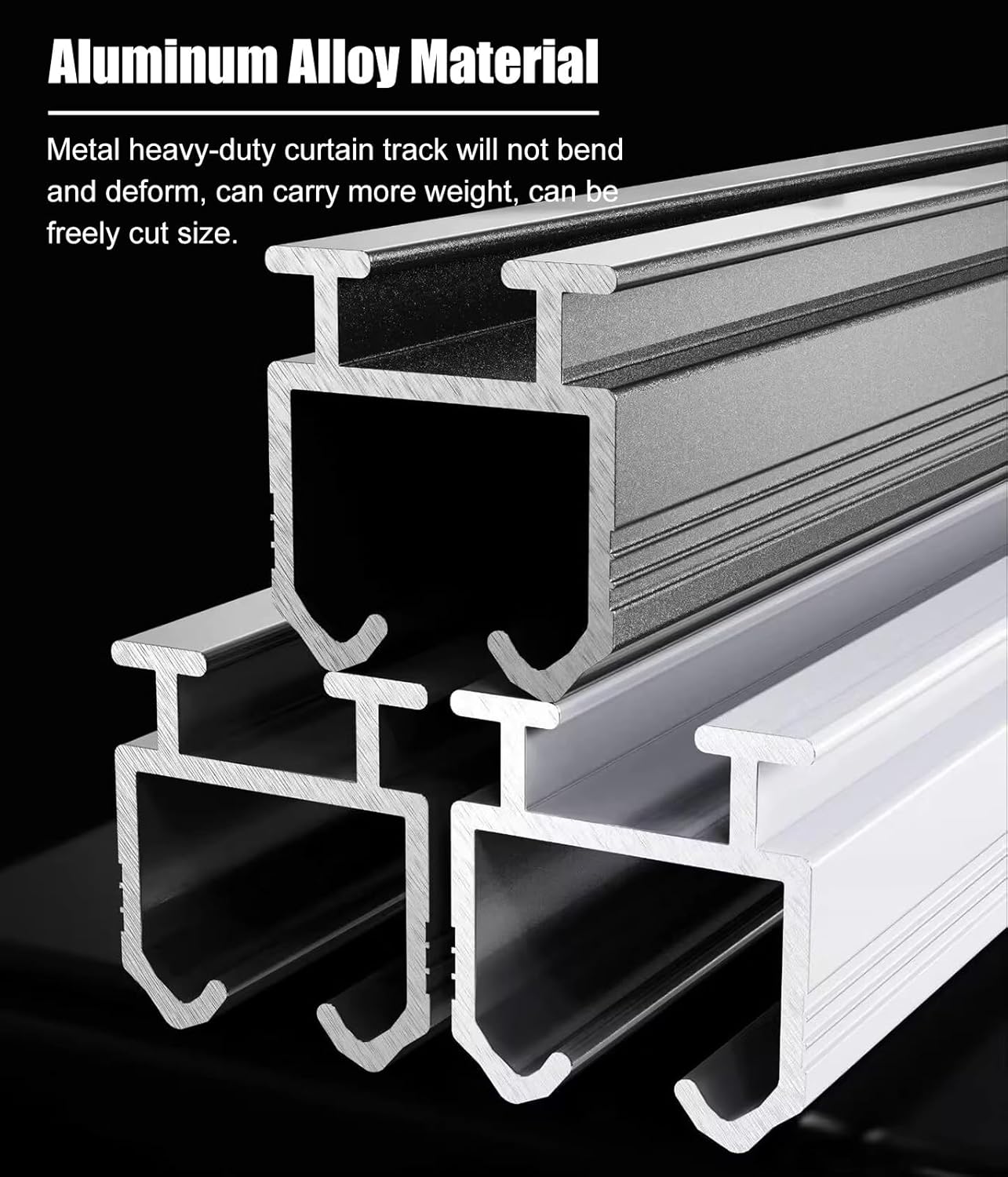Transform your living space with our versatile Curtain Track, designed to enhance any room while offering unmatched functionality. Crafted from durable aluminum alloy, this high-quality curtain track is available in three elegant colors: White, Gray, and Black, ensuring it complements your interior decor seamlessly. Our curtain track ranges from 91.5cm (3ft) to an impressive 610cm (20ft) in length, making it an ideal solution for spaces of all sizes. With a robust load capacity of up to 40kg (88lbs), it effortlessly supports even the heaviest blackout curtains, providing both privacy and light control to create your perfect atmosphere. One of the standout features of our curtain track is its smooth sliding mechanism, which prevents any sticking or jamming, ensuring a hassle-free experience every time you open or close your curtains. Need a custom length? No problem! The track is easily cuttable with a hacksaw, allowing you to tailor it to your specific needs. Installation is straightforward with all necessary accessories and screws included. Please note that if the length exceeds 1.5m, the curtain track will be delivered in sections for convenient transportation, and our unique connector allows for a seamless connection between tracks. Built to last, this curtain track is resistant to rust, wear, and weather, making it a durable choice for any environment. Whether you're looking to enhance your bedroom, living room, or office, our Curtain Track offers the perfect blend of style, strength, and practicality. Elevate your space today with this essential addition!